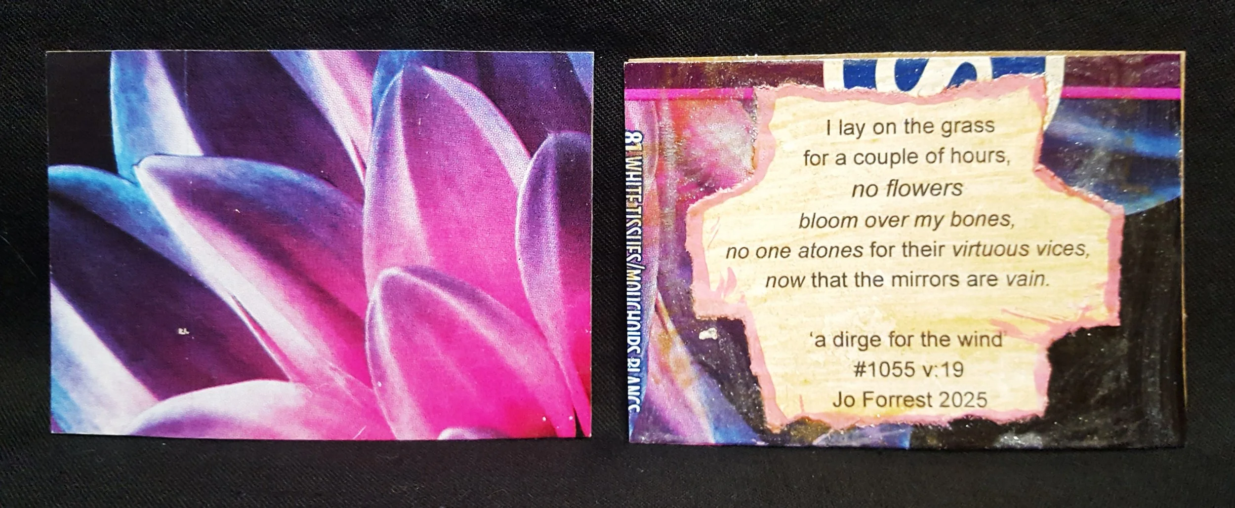 Art trading card, ‘a dirge for the wind’, poem verse, kleenex box.